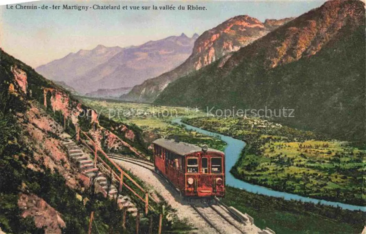 MARTIGNY Martinaco VS La Chemin de fer Martigny Chatelard et vue sur la vallee du Rhoe postalisch nicht gelaufen Erhaltung siehe scans [WerneD78]