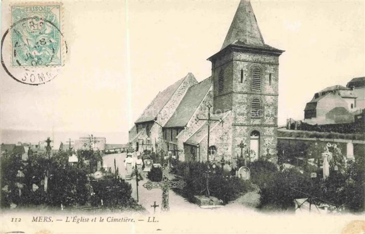 14114471 MERS-SUR-MER MERS-LES-BAINS Abbeville 80 Somme L'église et le cimetière postalisch gelaufen Erhaltung siehe scans [FriedD77] carte postale Frie Katcode 11170080180533