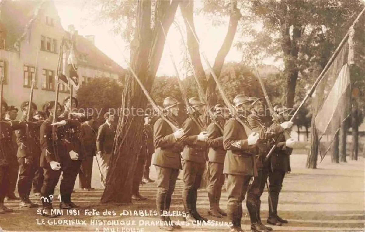 14120265 MULHOUSE Muehlhausen 68 Haut-Rhin 24 Mai 1931 Féte des Diables Bleus Drapeau des Chasseurs postalisch nicht gelaufen Erhaltung siehe scans [FriedD77] Frie Katcode 11170068468224