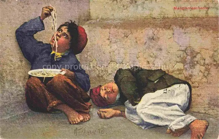 alte Postkarte Maccheroni NAPOLI Pasta Lebensmittel Kinder Spagetti postalisch gelaufen Erhaltung siehe scans [IrynaD87]