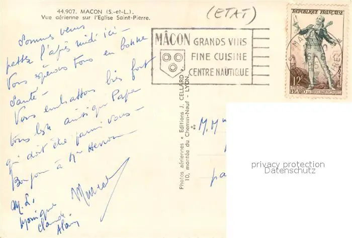 Macon_Saone-et-Loire Eglise Saint Pierre vue aérienne Macon Saone-et-Loire postalisch gelaufen 1954 Erhaltung siehe scans [FriedD77] Frierer