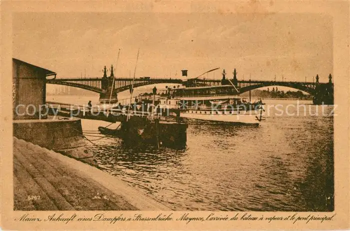 Mainz_Rhein Anleger Dampfer Strassenbruecke Mainz Rhein postalisch nicht gelaufen 1922 Erhaltung siehe scans [FriedD77] Frierer