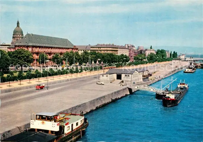 AK / Ansichtskarte Mainz_Rhein Rheinufer Bootsanleger Kurfuerstliches Schloss Mainz Rhein