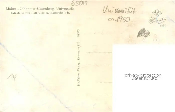 Mainz__Rhein Johannes-Gutenberg-Universitaet postalisch nicht gelaufen 1950 Erhaltung siehe scans [LiesaD40] LiesID40
