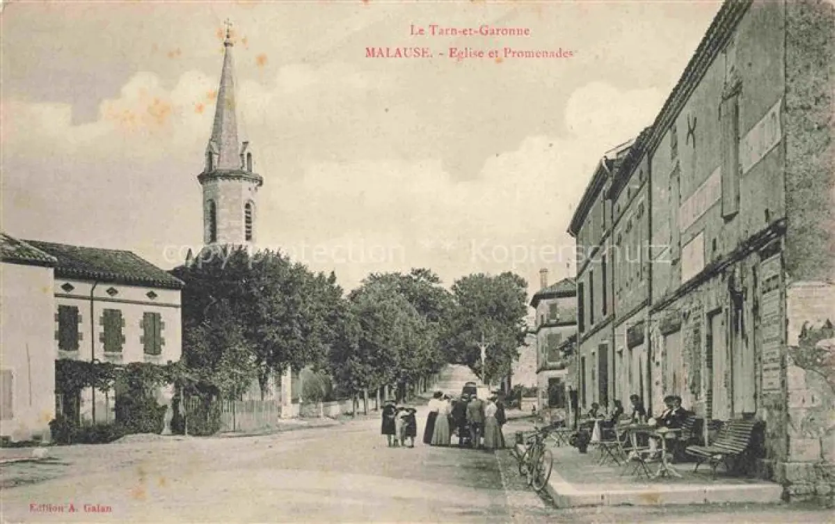 14115898 Malause Castelsarrasin 82 Tarn-et-Garonne Eglise et Promenade postalisch gelaufen Erhaltung siehe scans [FriedD77] alte Postkarte Frie Katcode 11170082182101