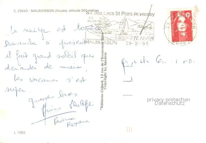 Malbuisson_Doubs en hiver vue aérienne Malbuisson Doubs postalisch gelaufen 1995 Erhaltung siehe scans [FriedD77] Frierer