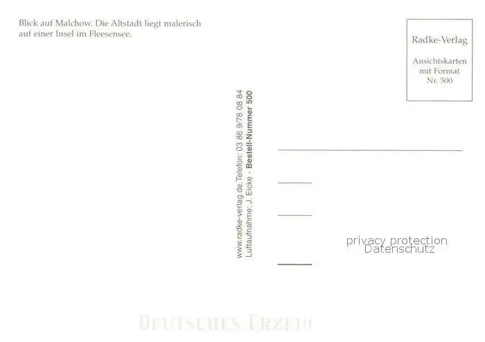 Malchow Fliegeraufnahme mit Fleesensee Malchow postalisch nicht gelaufen nach 1965 Erhaltung siehe scans [WerneD78] WernPID7