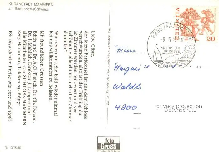Mammern Kuranstalt Mammern Fruehling am Untersee Mammern postalisch gelaufen 1979 Erhaltung siehe scans [WerneD78] WernPID7