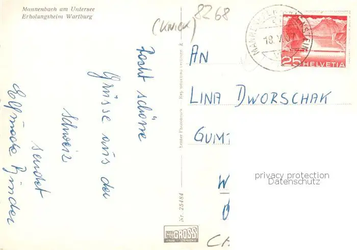 Mannenbach_Untersee Erholungsheim Wartburg Mannenbach Untersee postalisch gelaufen 1957 Erhaltung siehe scans [FriedD77] Frierer