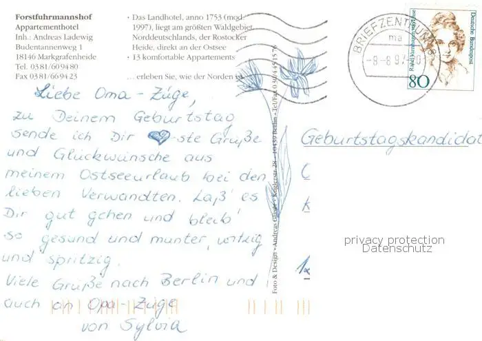 Markgrafenheide_Rostock Forstfuhrmannshof Teilansichten Reetdach-Haus Markgrafenheide_Rostock postalisch gelaufen 1997 Erhaltung siehe scans [LiesaD40] LiesID40