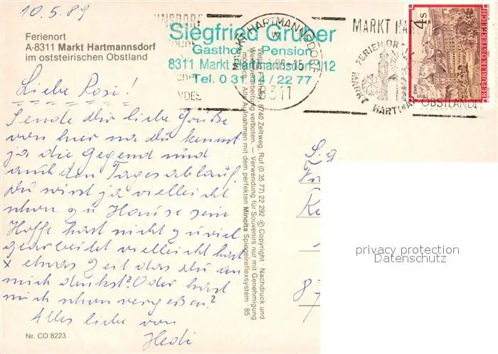Markt_Hartmannsdorf Panorama Kirche Gasthof Gruber Freibad Markt Hartmannsdorf postalisch gelaufen 1989 Erhaltung siehe scans [KathaD81] Kathoren