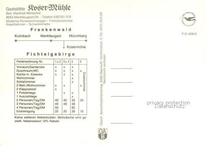 Marktleugast Gaststaette Koser Muehle Gastraeume Hallenbad Marktleugast postalisch nicht gelaufen nach 1965 Erhaltung siehe scans [FriedD77] Frierer