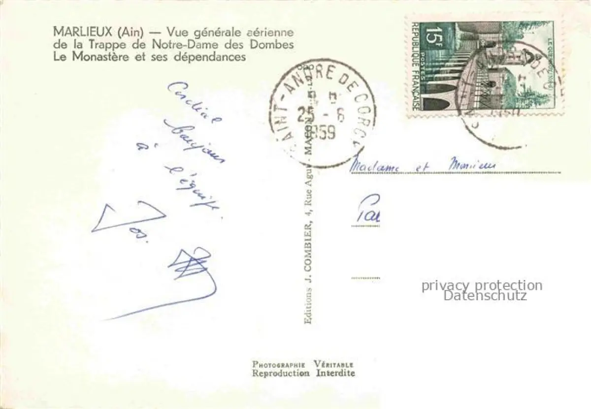 carte postale Marlieux Bourg-en-Bresse 01 Ain Vue générale aérienne de la Trappe de Notre-Dame des Dombes Monastère et ses dépendances postalisch gelaufen Fliegeraufnahme Erhaltung siehe scans [FriedD77]