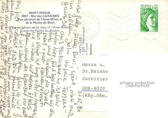 old postcard Martinique Mer des Caraibes Vue aerienne postalisch gelaufen Erhaltung siehe scans [WerneD78]