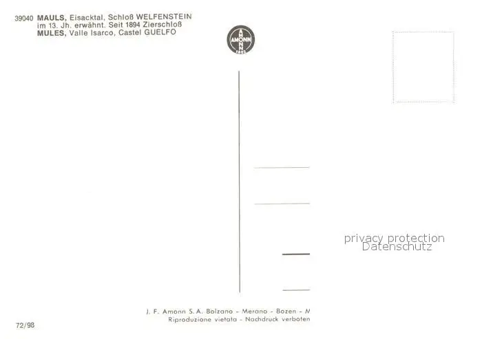 Mauls Schloss Welfenstein im Eisacktal Mauls postalisch nicht gelaufen nach 1965 Erhaltung siehe scans [FriedD77] Frierer