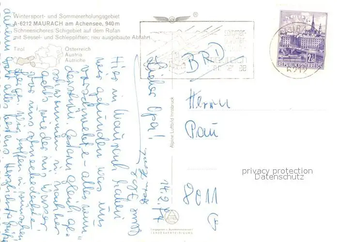 Maurach_Achensee Rofanseilbahn Maurach Achensee postalisch gelaufen 1974 Erhaltung siehe scans [LiesaD40] LiesID40
