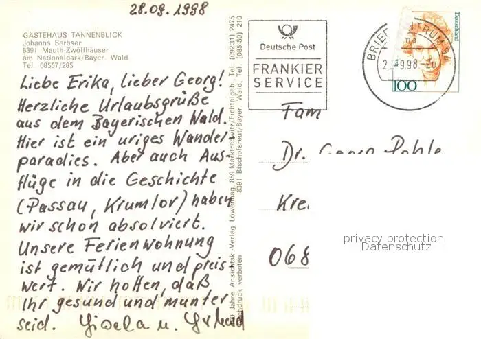 Mauth_Niederbayern Nationalpark Bayerischer Wald Gipfelkreuz Panorama Bach Luchs Mauth Niederbayern postalisch gelaufen 1998 Erhaltung siehe scans [WerneD78] WernPID7