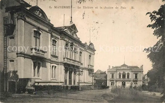 Mayenne Théâtre et la Justice de Paix Mayenne postalisch gelaufen 1918 Erhaltung siehe scans [FriedD77] Frierer