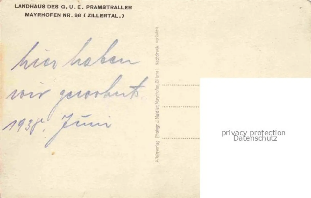 Mayrhofen Zillertal Tirol AT Landhaus des GuE Pramstraller postalisch nicht gelaufen Erhaltung siehe scans [WerneD78]