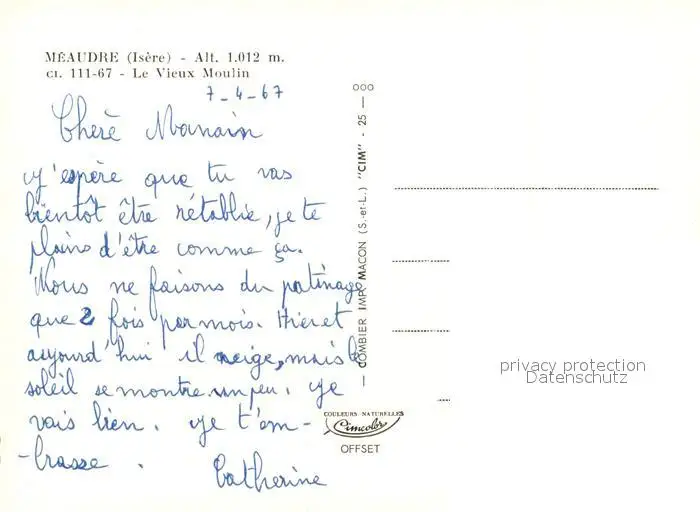 Meaudre Le vieux Moulin Meaudre postalisch nicht gelaufen 1967 Erhaltung siehe scans [KathaD81] Kathoren