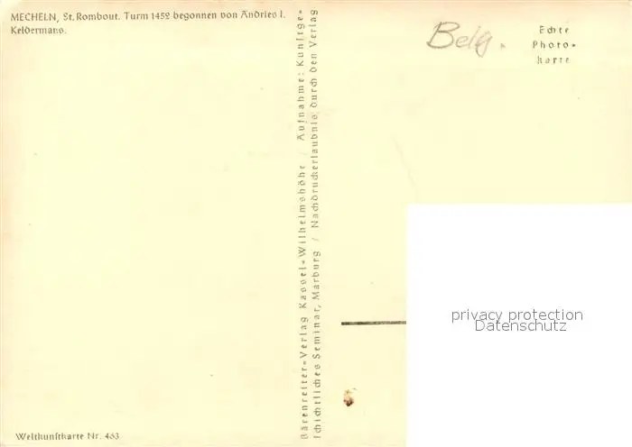 Mecheln St Rombout Turm Mecheln postalisch nicht gelaufen 1921-1965 Erhaltung siehe scans [WerneD78] WernPID7