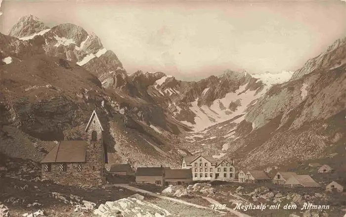 Meglisalp_1520m_Altmann_AR Panorama mit Kirche postalisch nicht gelaufen 1921-1965 Erhaltung siehe scans [WerneD78] WernPID7