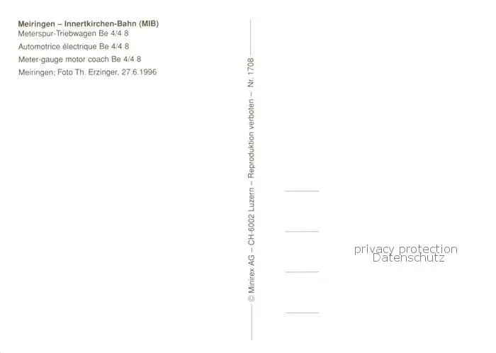Meiringen_BE Innertkirchen-Bahn Meterspur-Triebwagen Be 4/4 8 Meiringen BE postalisch nicht gelaufen nach 1965 Erhaltung siehe scans [FriedD77] Frierer