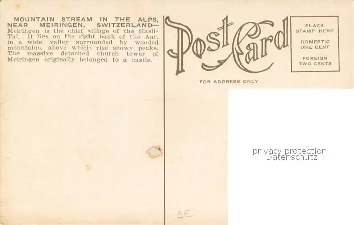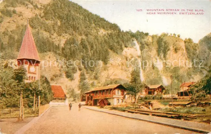 Meiringen_BE Mountain Stream in the Alps Bergdorf Berner Alpen Meiringen BE postalisch nicht gelaufen bis 1920 Erhaltung siehe scans [FriedD77] Frierer