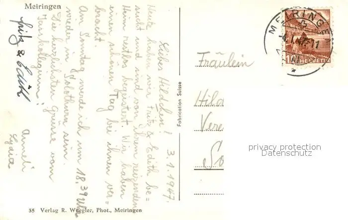 Meiringen_BE Winterpanorama Kirche Meiringen BE postalisch gelaufen 1947 Erhaltung siehe scans [KathaD81] Kathoren