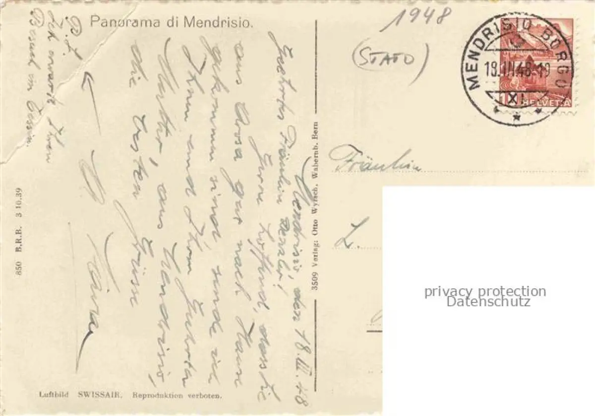 14079567 Mendrisio TI Panorama postalisch gelaufen Fliegeraufnahme Erhaltung siehe scans [FriedD77] Fliegeraufnahme alte Postkarte Frie Katcode 11470210670330