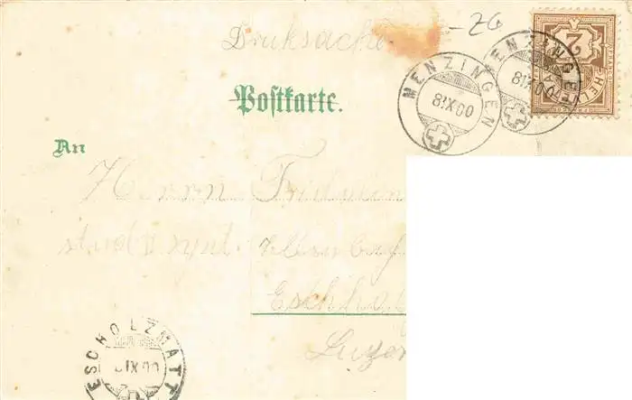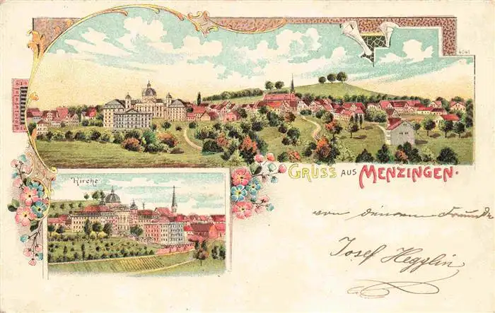 Menzingen__ZG Panorama Ansicht mit Kirche Litho postalisch gelaufen 1900 Erhaltung siehe scans [FriedD77] Frierer