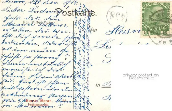 Meran_Merano Fruehling Meran Merano postalisch gelaufen 1914 Erhaltung siehe scans [KathaD81] Kathoren