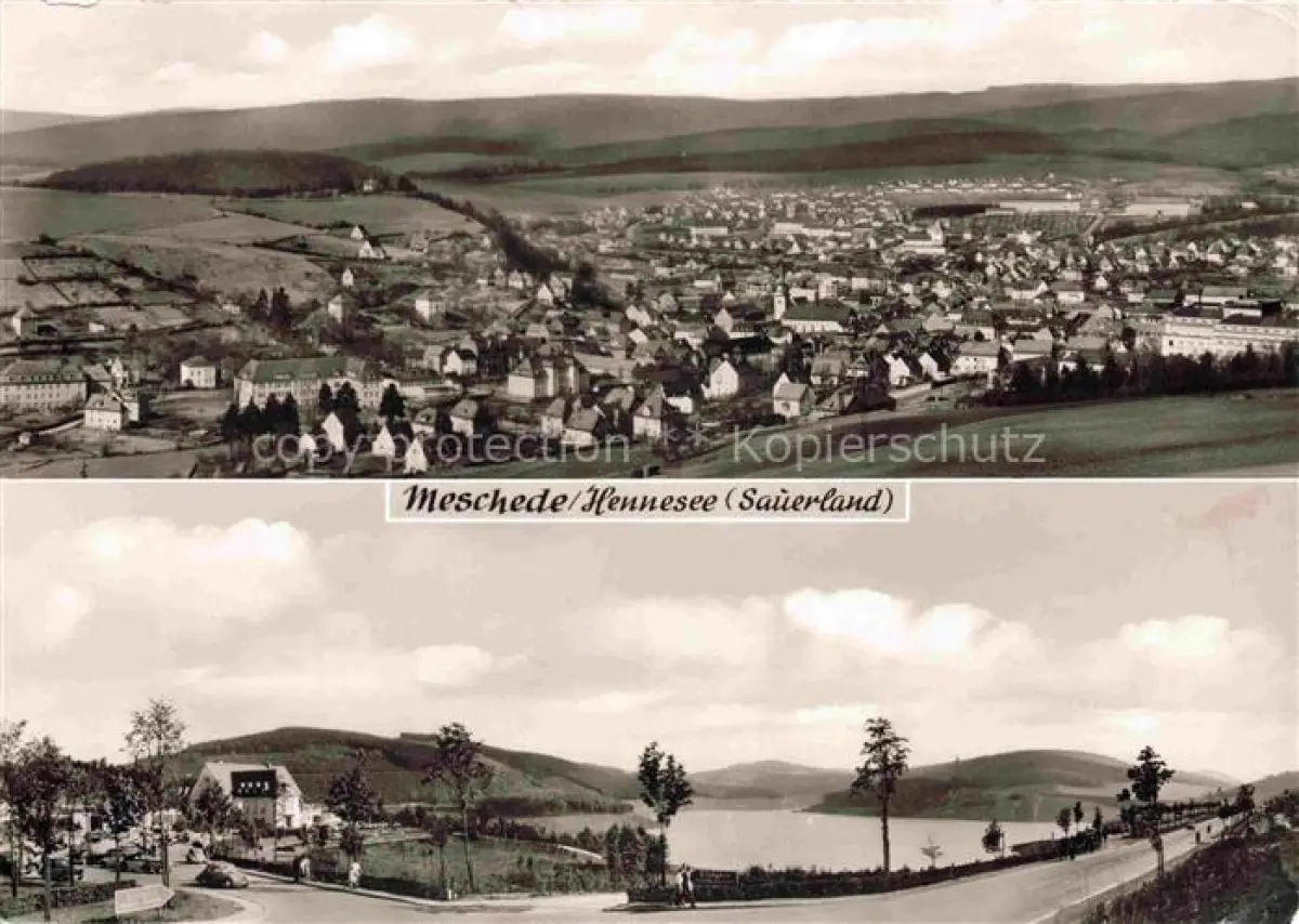 alte Postkarte Meschede Arnsberg Hochsauerlandkreis NRW Panorama Hennesee postalisch gelaufen Erhaltung siehe scans [FriedD77]