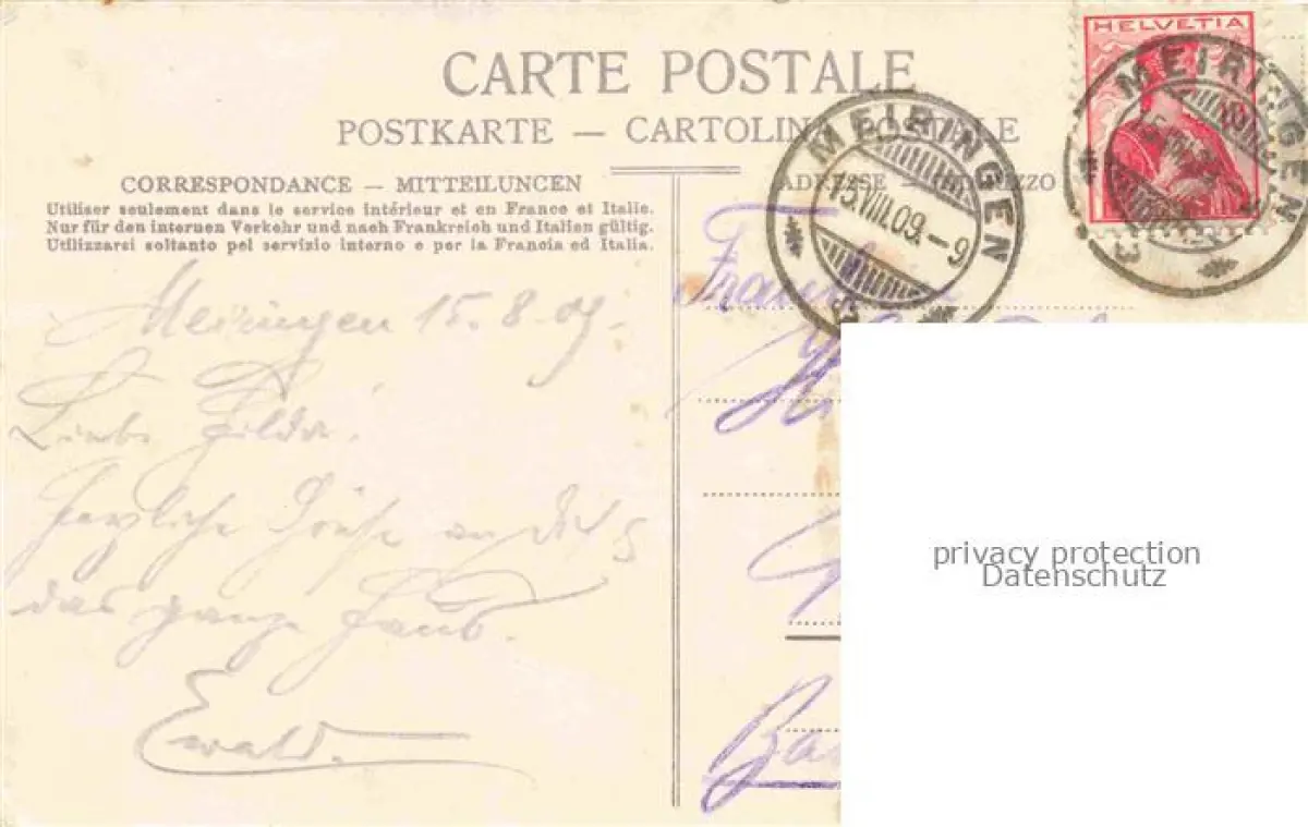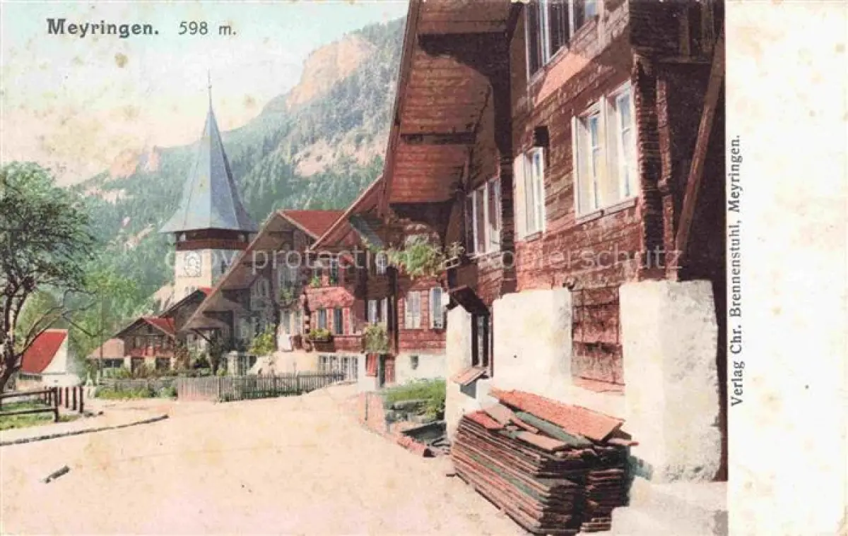 alte Postkarte Meyringen Meiringen BE Ortspartie mit Kirche postalisch gelaufen Erhaltung siehe scans [WerneD78]
