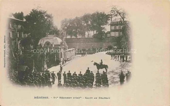 Mezieres CHARLEVILLE-MEZIERES 08 Ardennes 91e Regiment d'Inf Salut au Drapeau postalisch nicht gelaufen Erhaltung siehe scans [WerneD78]