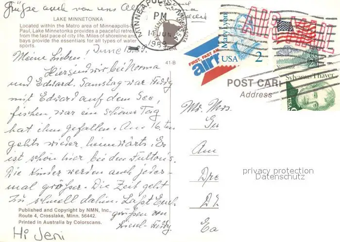 Minneapolis_Minnesota Lake Minnetonka Air view postalisch gelaufen 1989 Erhaltung siehe scans [WerneD78] WernPID7