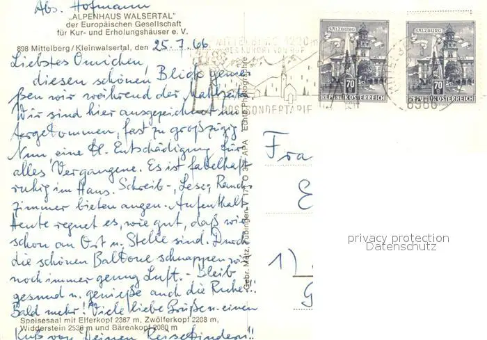 Mittelberg_Kleinwalsertal Alpenhaus Walsertal Panoramablick Mittelberg_Kleinwalsertal postalisch gelaufen 1966 Erhaltung siehe scans [WerneD78] WernPID7