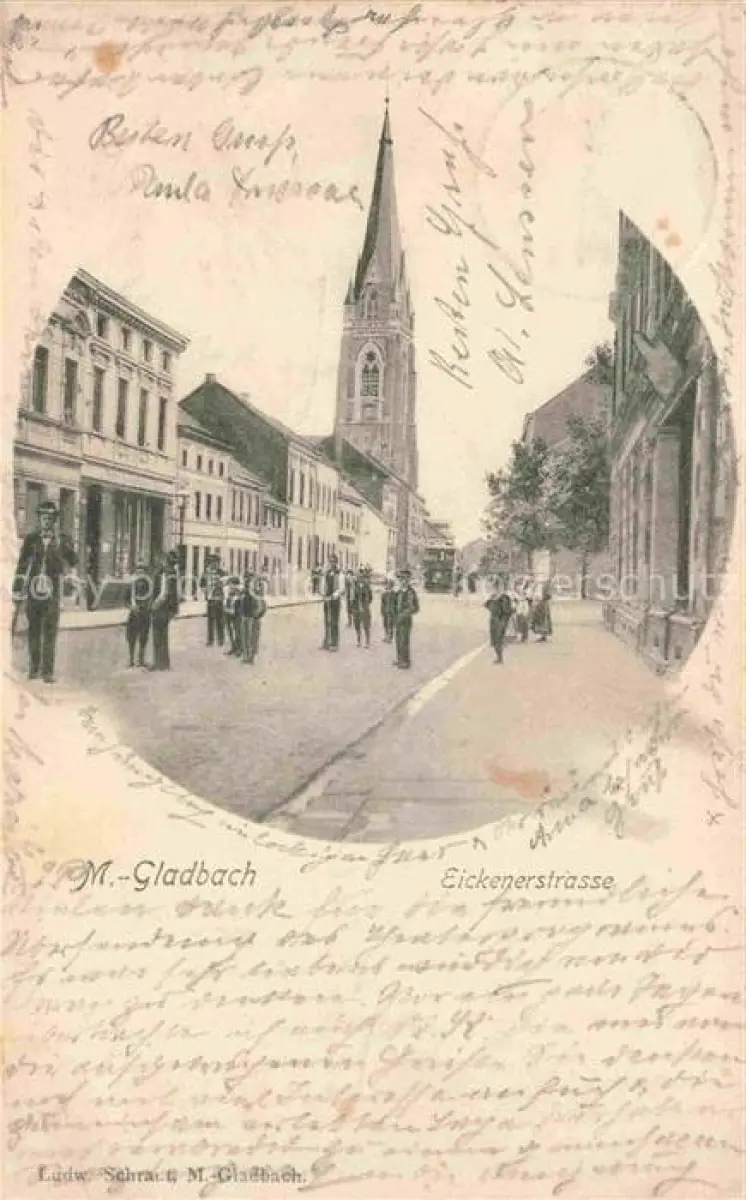 alte Postkarte MoeNCHENGLADBACH NRW Eickenerstrasse Kirche postalisch gelaufen Erhaltung siehe scans [FriedD77]