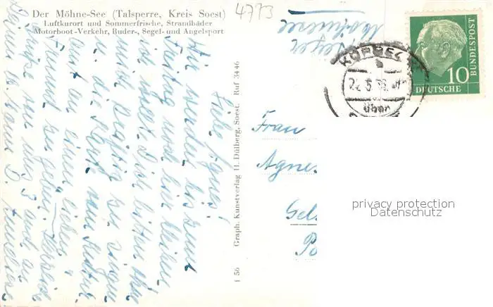 Moehnesee Sperrmauer ueberlauf Delecker Bruecke Koerbecker Bruecke Bruecke bei Wamel Strandbad Am Abend Am Stockumer Damm Moehnesee postalisch gelaufen 1956 Fliegeraufnahme Erhaltung siehe scans [WerneD78] Fliegeraufnahme WernPID7