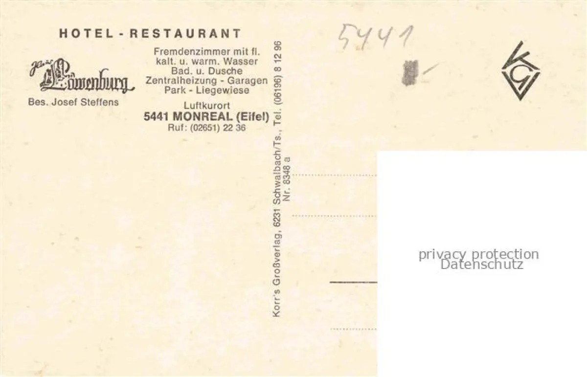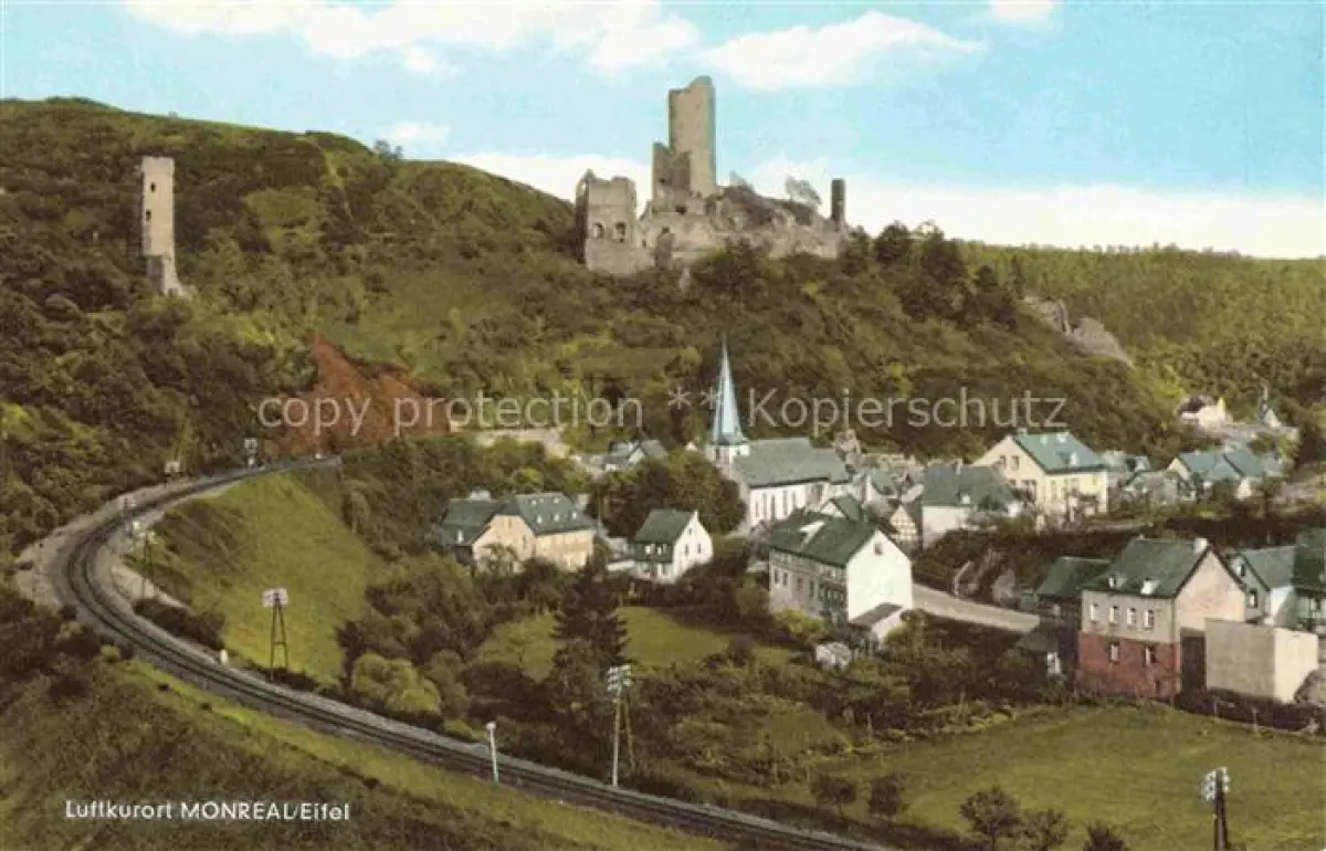 Monreal Eifel Panorama mit Burgruine Luftkurort postalisch nicht gelaufen Erhaltung siehe scans [FriedD77]