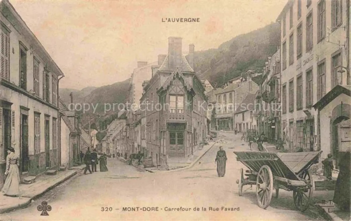 14105744 Mont-Dore-les-Bains Clermont-Ferrand 63 Puy-de-Dome Carrefour de la Rue Favard postalisch gelaufen Erhaltung siehe scans [FriedD77] carte postale Frie Katcode 11170063263236