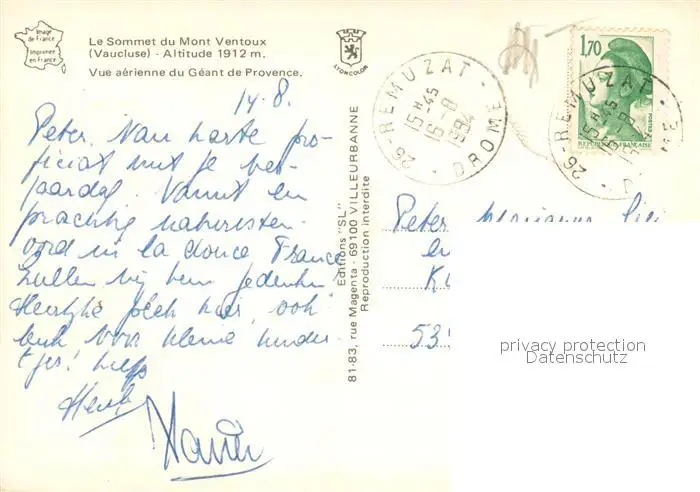 Mont_Ventoux Sommet du Mont Ventoux vue aérienne du Géant de Provence Mont Ventoux postalisch gelaufen 1994 Erhaltung siehe scans [FriedD77] Frierer