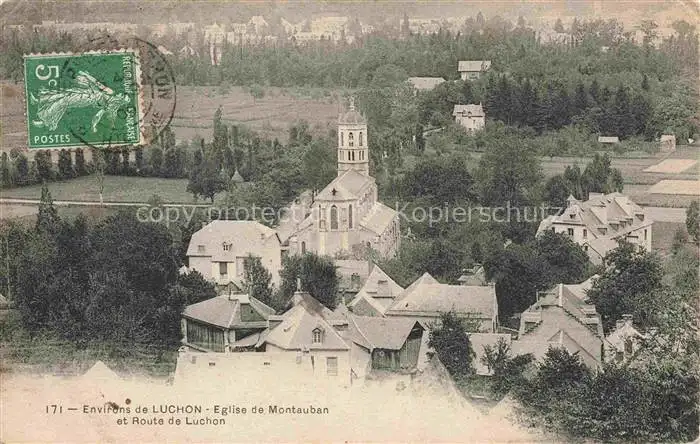 carte postale Montauban-de-Luchon Saint-Gaudens 31 Haute-Garonne Eglise de Montauban et Route de Luchon postalisch gelaufen Erhaltung siehe scans [WerneD78]