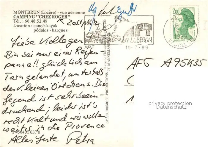 Montbrun_Lozere Camping Chez Roger vue aérienne Montbrun Lozere postalisch gelaufen 1989 Erhaltung siehe scans [FriedD77] Frierer
