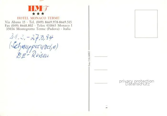 Montegrotto_Terme Hotel Monaco Terme Hallenbad Swimming Pool Whirlpool Wellness Montegrotto Terme postalisch nicht gelaufen 1994 Erhaltung siehe scans [FriedD77] Frierer
