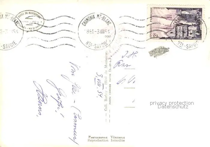 Montenvers_Chamonix_74_Haute-Savoie Mer de Glace Vue partielle postalisch gelaufen 1954 Erhaltung siehe scans [WerneD78] WernPID7