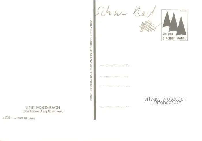 Moosbach_Vohenstrauss Panorama Landschaft Ortseinfahrt Brunnen Hallenbad Badeweiher Oberpfaelzer Wald Moosbach_Vohenstrauss postalisch nicht gelaufen nach 1965 Erhaltung siehe scans [FriedD77] Frierer
