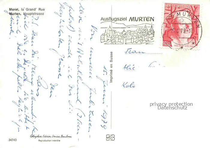 Morat_Murten_FR La Grand Rue postalisch gelaufen 1979 Erhaltung siehe scans [WerneD78] WernPID7