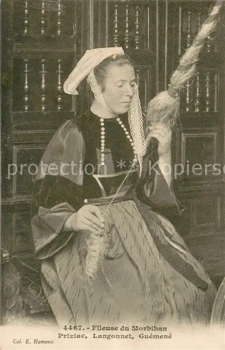Morbihan_Region Fileuse Costumes Trachten Spinnerei postalisch nicht gelaufen bis 1920 Erhaltung siehe scans [FriedD77] Frierer