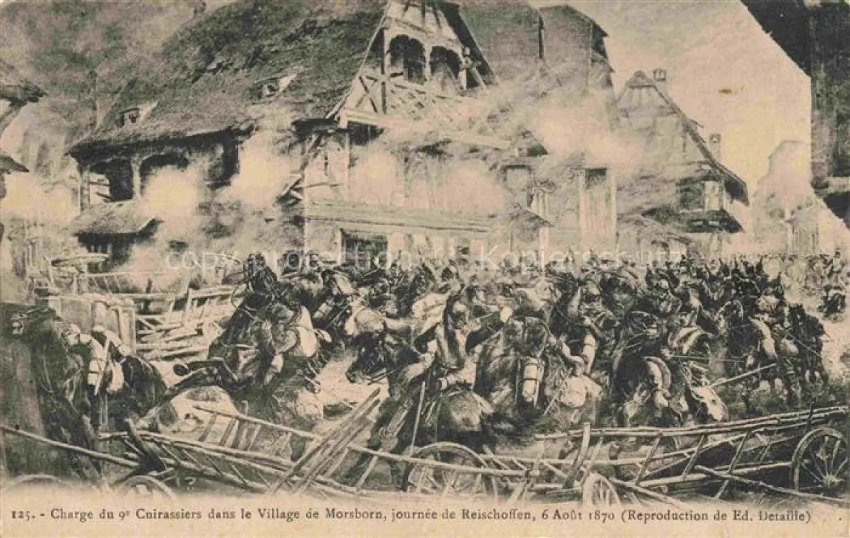 Morsborn Morsbronn-les-Bains Bad 67 Bas-Rhin Charge du 9e Cuirassiers dans le Village de Morsborn journee de Reischoffen 6 Aout 1870 postalisch nicht gelaufen Erhaltung siehe scans [WerneD78]